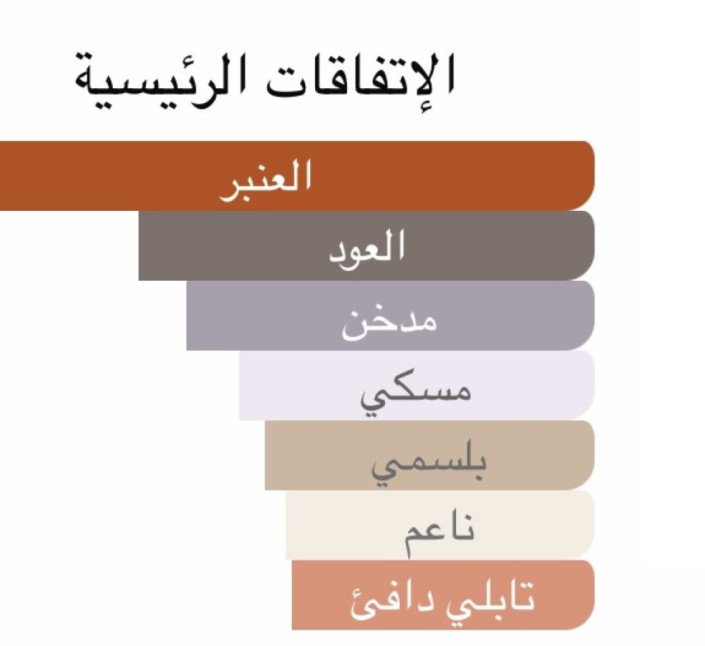 - يليها قلب العطر مكون من نكهات العود والعنبر